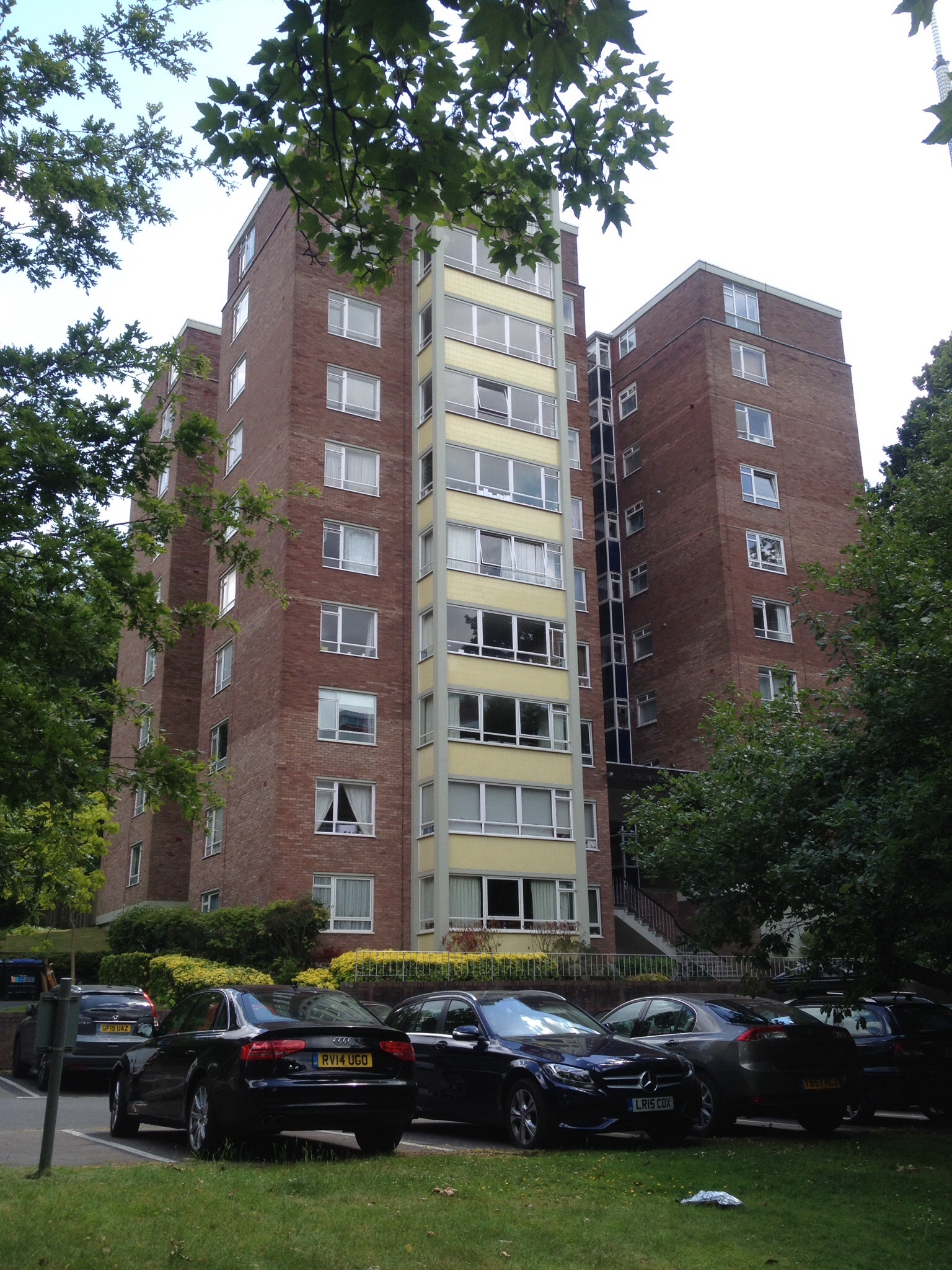 My search for a modernist property in the Crystal Palace area inevitably brought me back to the Dulwich Wood Park estate that I last visited a couple of months ago. This time I viewed two flats on the first and sixth floors of Grenville Court, Raleigh Court’s paler-coloured neighbour.