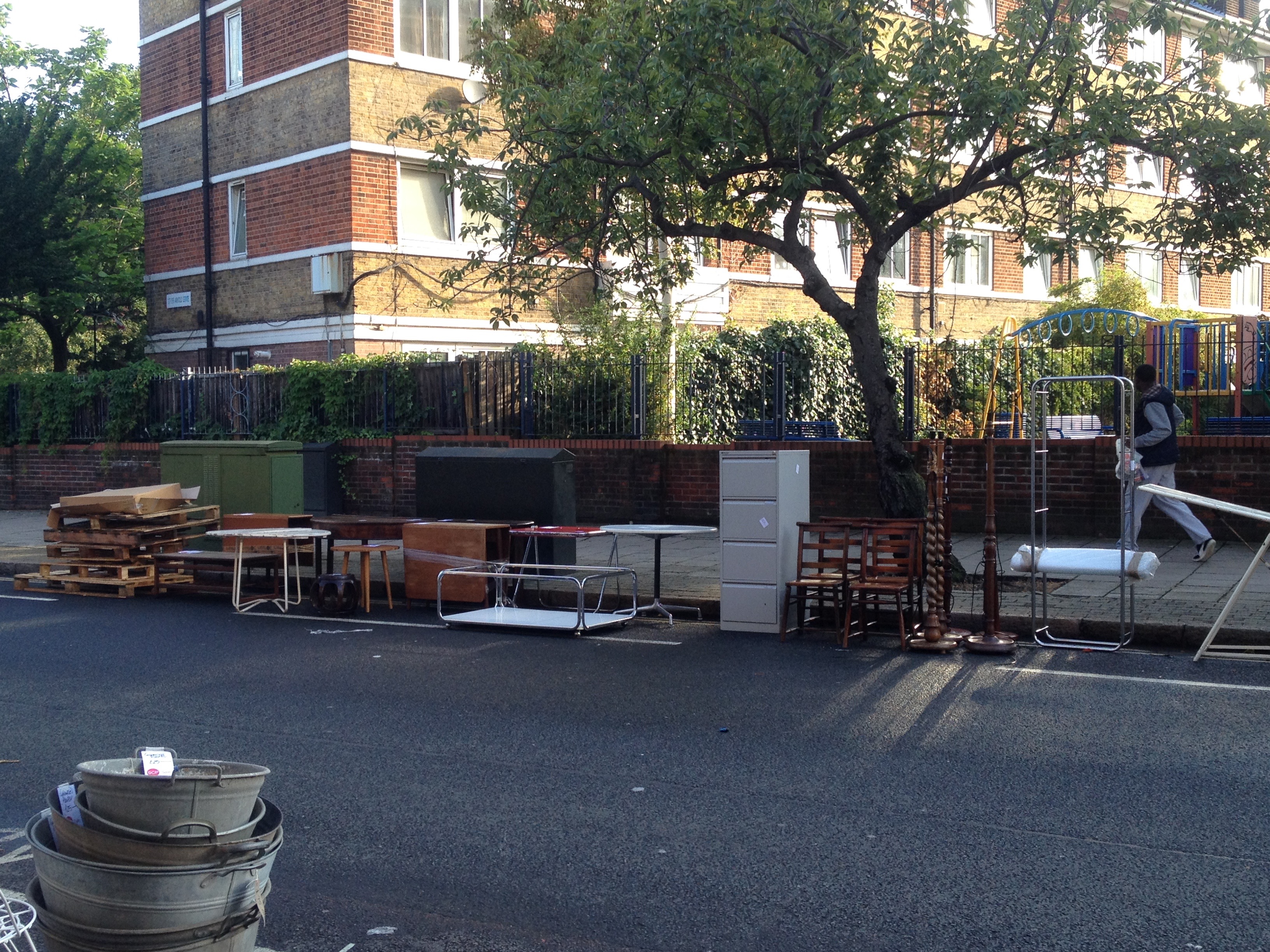 This was far less frenetic than last year’s scrum but the decreased level of interest was perhaps down to the slightly inferior quality of goods on offer. There were fewer “big name” items than last year and a lot of the furniture appeared to consist of rusty vintage junk that SCP had used as accessory props in a recent tradeshow. There were some treasures to be extracted from the junk pile, however: I managed to scout out a large Componibili unit (I’ve always wanted one), some pendant lighting (for which I probably won’t find any use), a String sliding cabinet unit in birch (the collection of random String items in my cupboard is slowly coming together!) and a nice metal and wood clothes hook.