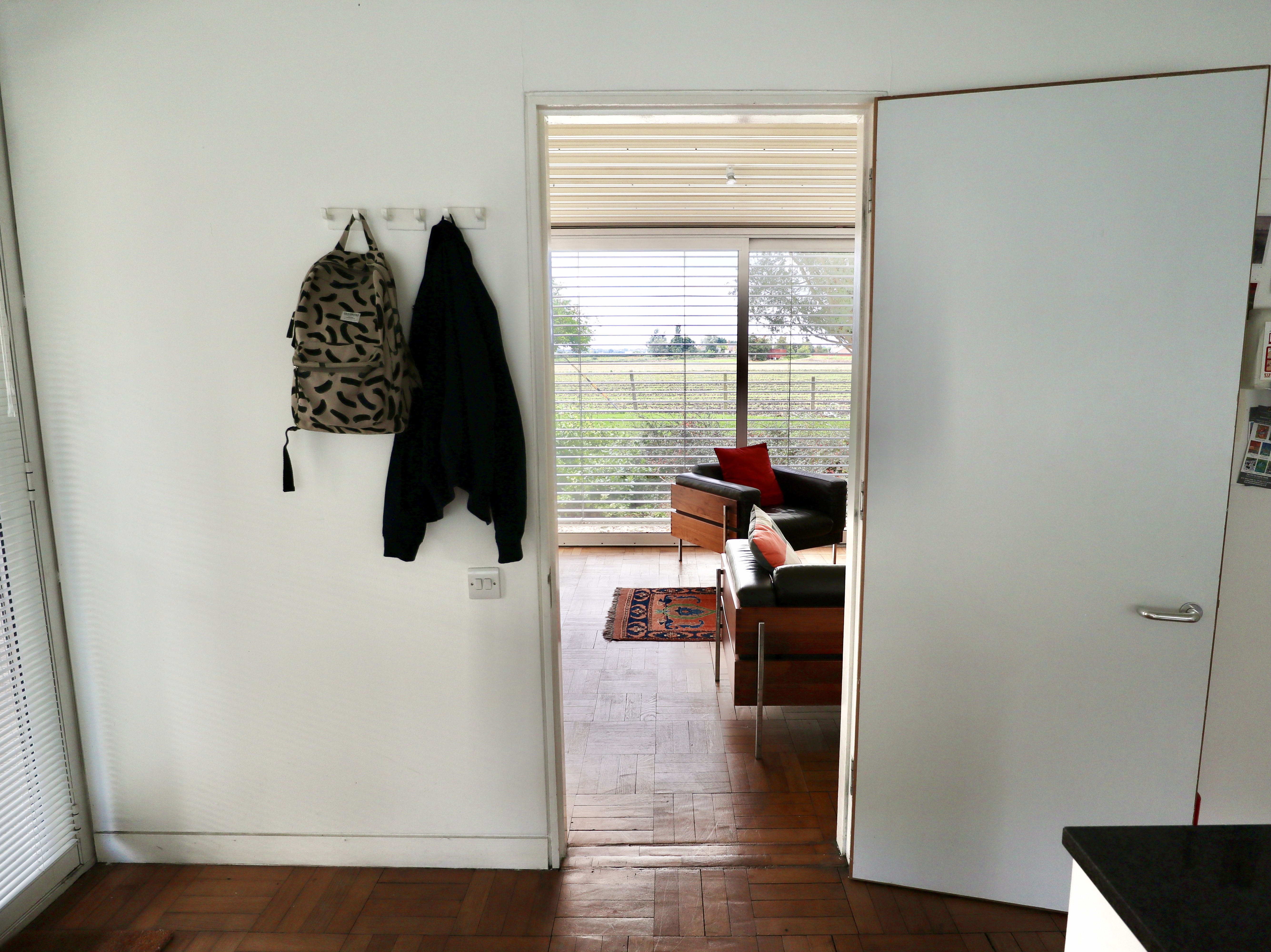 The flat itself consisted of a large open plan living area and sleeping area separated by a sliding wall. A “jack and Jill” bathroom (i.e. with a door at each end) ran down the side of the flat, providing a direct route to the sleeping area from the front door.