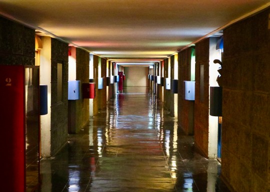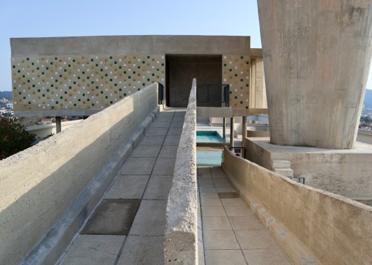 Set over 12 storeys, La Cité Radieuse was built to house 337 apartments, two indoor streets of commercial units on the third and fourth floors (currently occupied by a hotel, restaurant and a number of high-end stores), a nursery school and an art gallery, all topped by a expansive communal terrace featuring sculptural ventilation stacks, a running track, a shallow paddling pool for children, an open-air stage, a children’s art school in the atelier and unobstructed views of the Mediterranean and Marseille.
