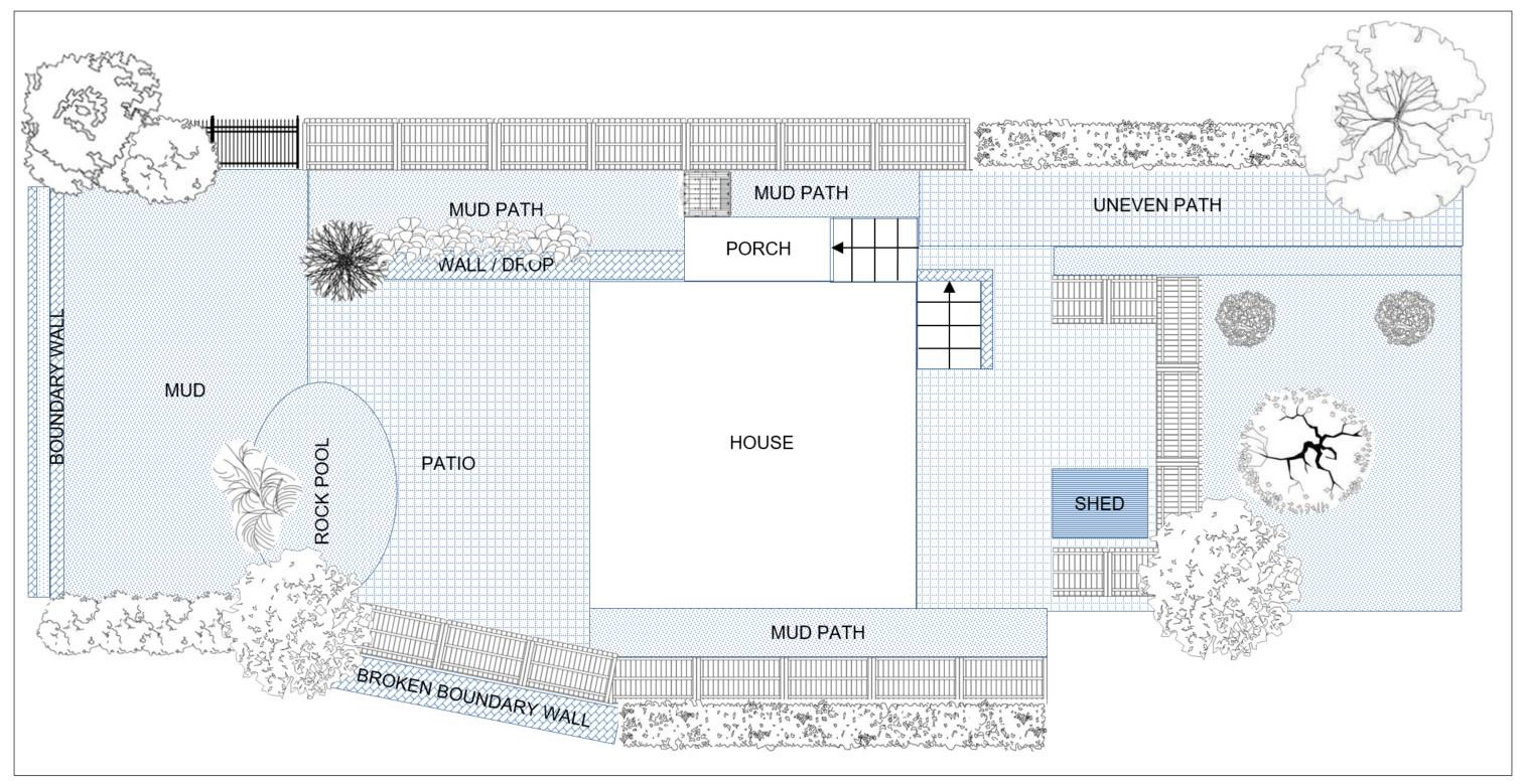 We would lay a new back patio (concrete slabs with gravel poured in between them) and the sloping dirt path running down the side of the house would be fitted with stepped sleepers, paving stones, gravel and new planting. We would re-lay the wonky paving stones out front and install a large box planter, to be planted with herbs, behind the fence next to the old shed (which was just too full of crap to even contemplate getting rid of). Finally, the dirt patch in front garden would be completely filled up with new plants and shrubs to frame the cherry blossom tree in the centre.