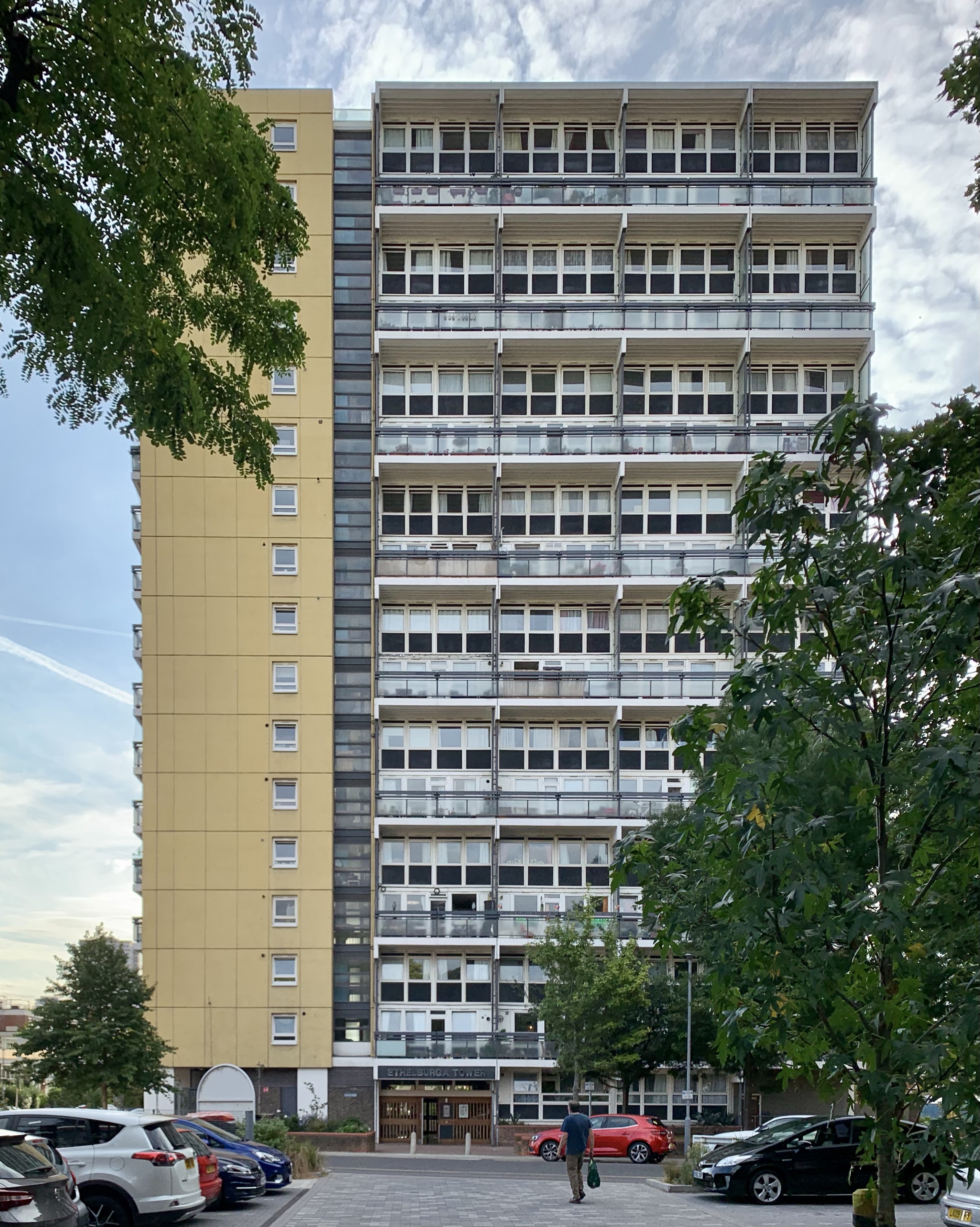 Next on the 2021 Open House itinerary was Ethelburga Tower, a 1960s 17-storey concrete framed block of flats near Battersea Park designed by the LCC Architects Dept with Ove Arup & Partners as consulting engineers.