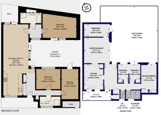 Following a bit of online sleuthing, I discovered that this bungalow originally had an L-shape configuration into which four small bedrooms and separate living and kitchen areas were squeezed. This L-shape opened onto a large rear garden.