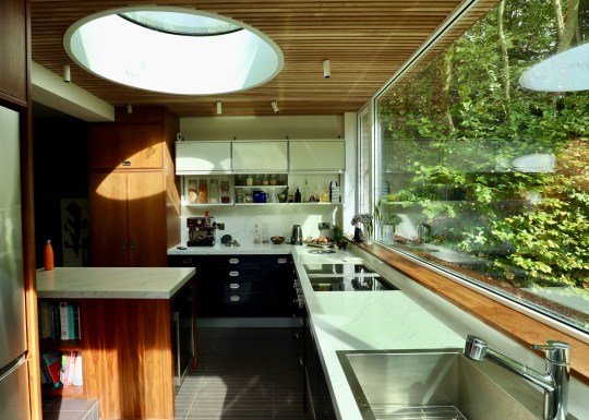 Other familiar features typical of an Austin Vernon and Partners house included the open tread staircase, large plate glass windows and woodblock parquet flooring. The owner had, however, replaced the traditional warm air heating system with something equally unobtrusive: slimline radiators built into the skirting boards – apparently, popular in hospitals but still fairly unusual for residential properties. I would definitely have done this in our house if I’d known it was an option!
