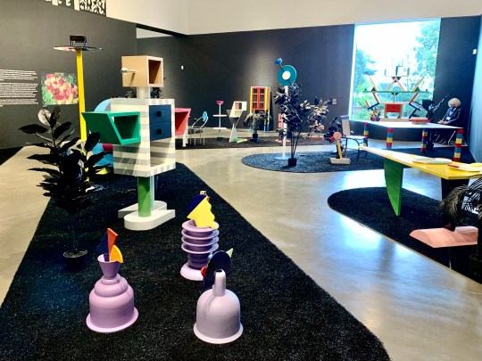 I attended a very comprehensive Memphis exhibition at the MK Gallery in Milton Keynes all the way back in 2021 (when some of the Covid restrictions had been lifted), which showcased the best of the movement’s pieces including Masanori Umeda’s Tawaraya (a boxing-ring-shaped bed), Michael Graves’ Plaza dressing table and stool (resembling a space ship made out of children’s wooden building blocks) and Ettore Sottsass’ Carlton room divider/extremely non-functional bookcase.
