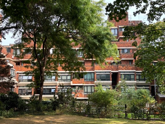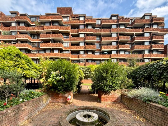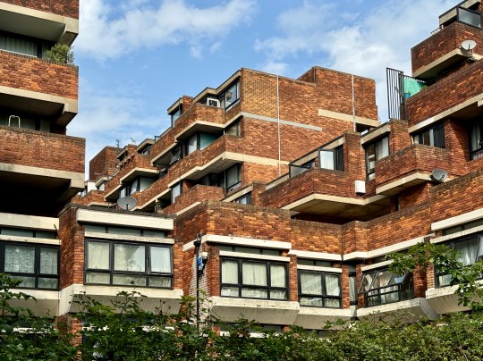 The design was inspired by the Victorian red brick of the arts and crafts-style Grade I-listed Church of St James the Less, which is situated on the site. This was an unusual design choice in the 1960s – I don’t think I’ve ever seen another completely red brick modernist estate before.