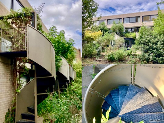 We were not shown inside any of the apartments but were told that they ranged from studios to much larger four bedroom homes clustered in groups of three with interlocking “scissor” floor plans. I found some interior shots via old estate agent listings for a studio and a three-bedroom split level apartment, which give an idea of the size and shape of the homes.