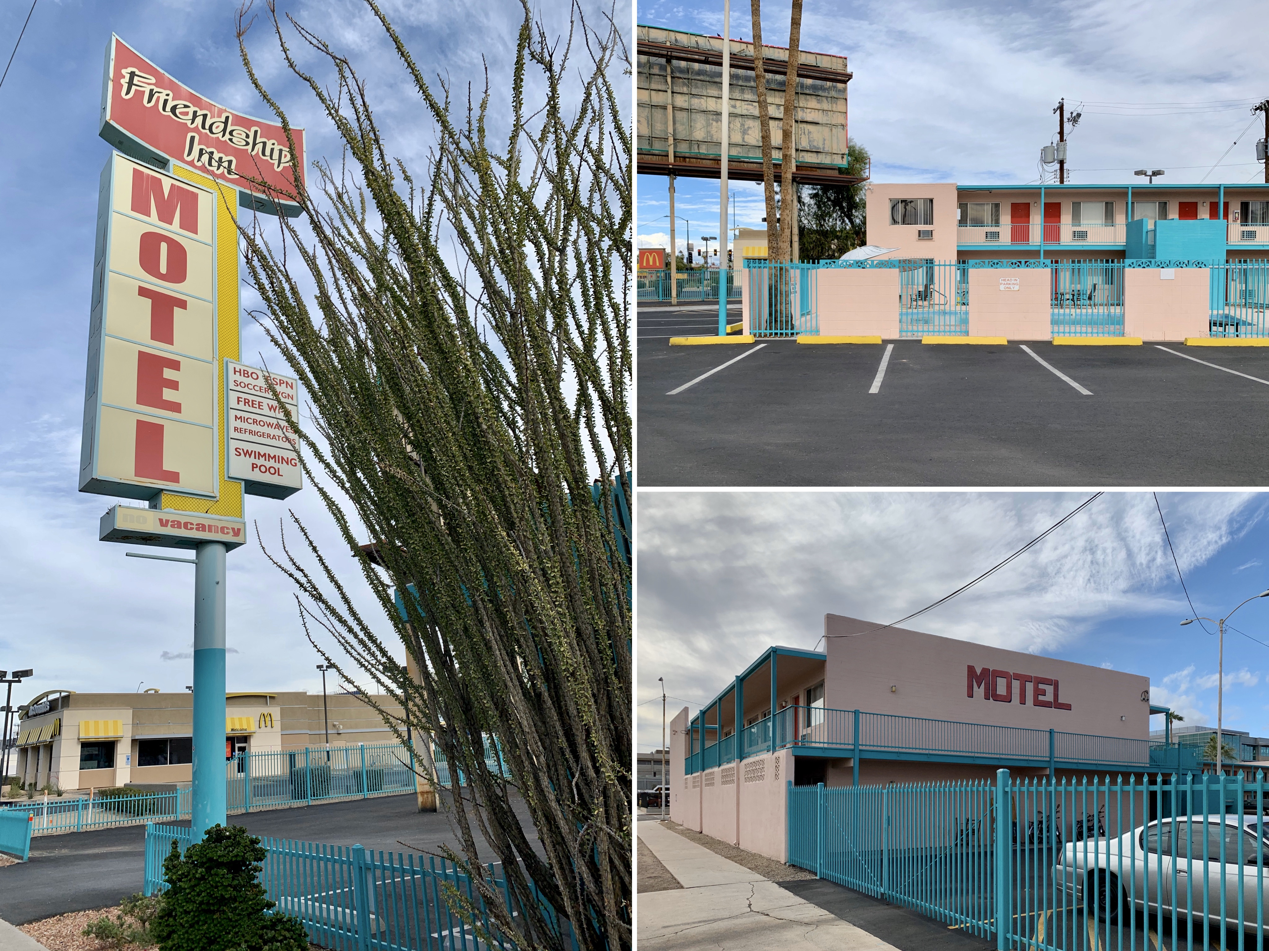 We came across some futuristic-looking mid-century motels featuring dramatic angles, bold colours and oversized neon signs, the best example of this being the City Centre Motel (now a Travelodge) from 1959. Most of these had been left to ruin and had a distinctly seedy feel upon closer inspection.