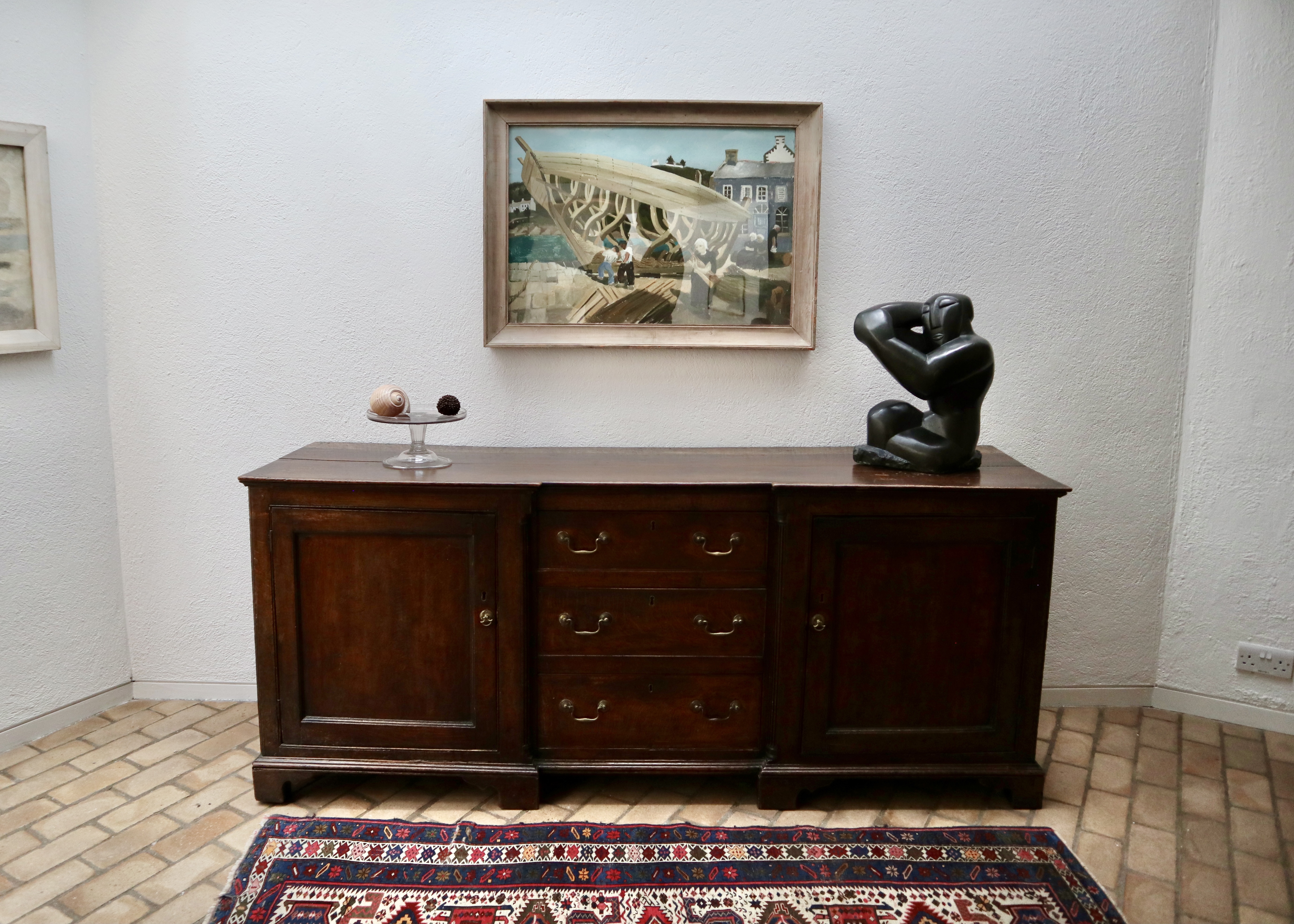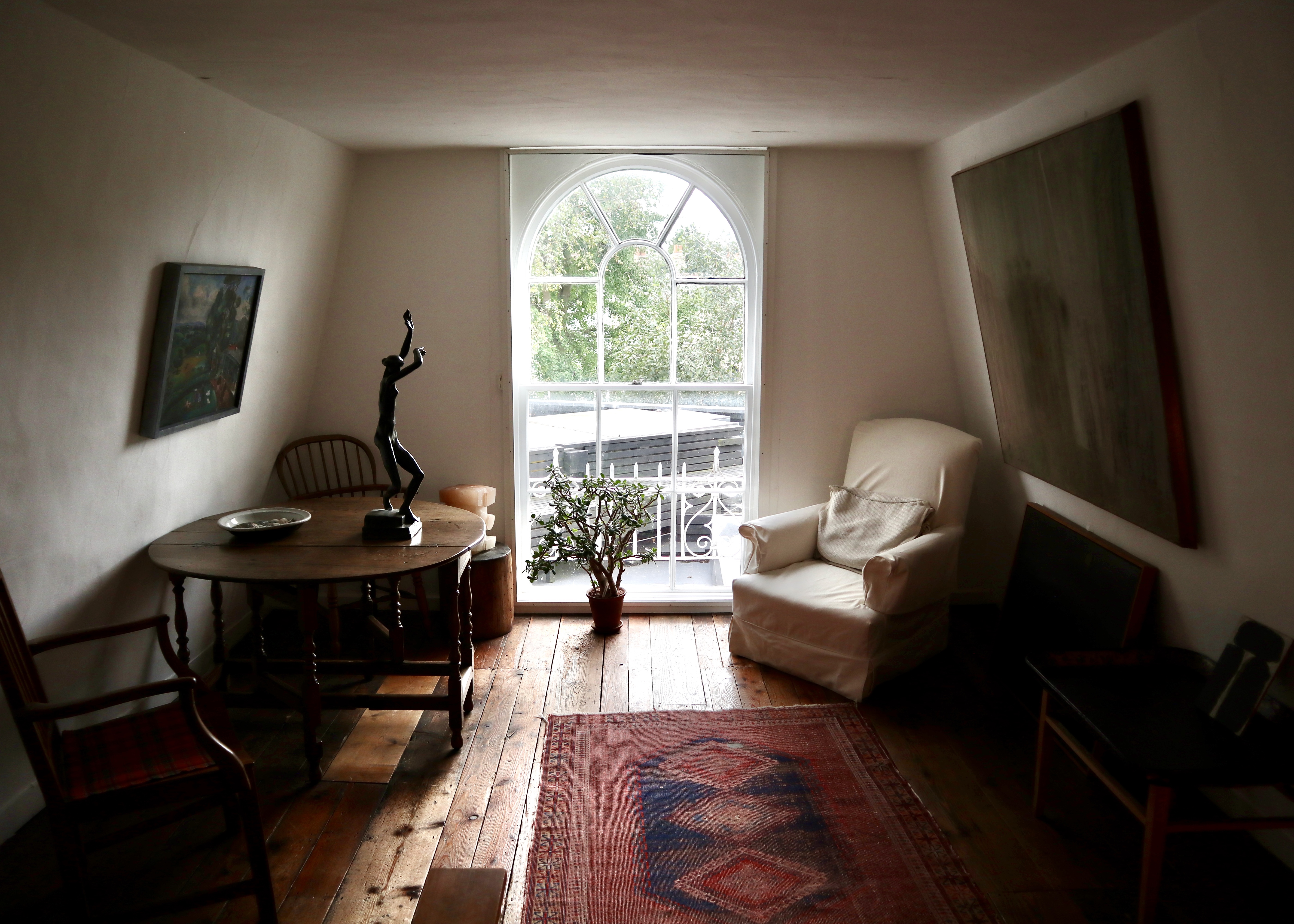 This part of the house consisted of the three original cottages knocked into one and contained the couples’ bedrooms and a reception room on both the upper and lower levels. Whilst the couple had upgraded the original slum cottages, installing more luxurious fixtures and fittings to replace the original features (the mid century-style spiral staircase and large windows would not have been found in the original slum dwellings, for example), these rooms were low ceilinged and modest in size. This made for an unusually homely and intimate setting for displaying significant pieces of early 20th century paintings and sculpture.