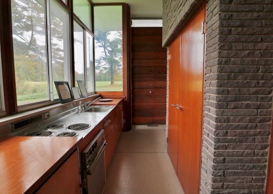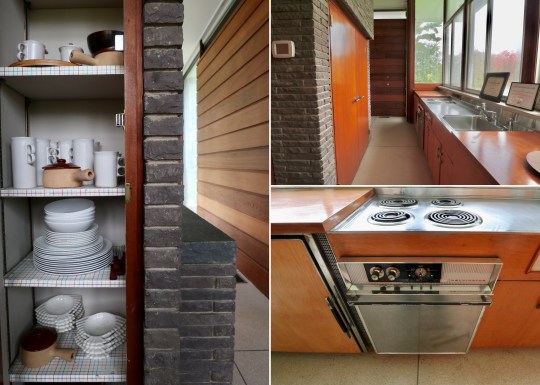 Dinner would have been prepared in the narrow but carefully designed galley kitchen, which was laid out to ensure everything as within easy reach and contained appliances (garbage disposal, dishwasher, cooker, and refrigerator) that would have been modern for the time. The kitchen had a “cold” section (the section nearest the door) and “warm” section (at the rear of the room towards the window) with the cold section acting as a buffer to keep kitchen smells contained (again – a great idea that is due a comeback). The metal cabinets were reportedly sourced from a medical catalog.