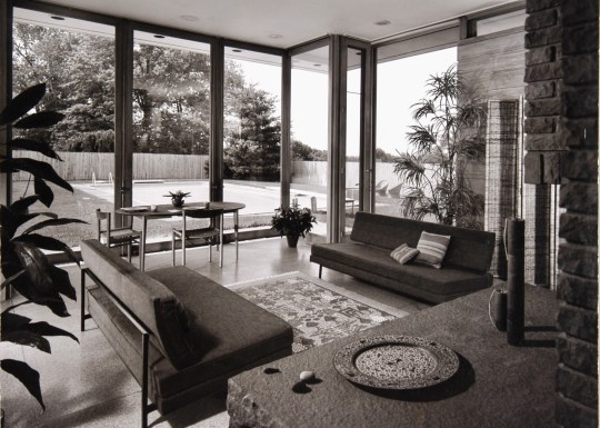 While the original pool was filled in, the New Canaan Historical Society rescued the building through private donations and a grant from the state of Connecticut Department of Culture and Tourism. The two side wings were repurposed into gallery spaces and the main reception room was restored back to its original condition in order to be a living museum for modern architecture.